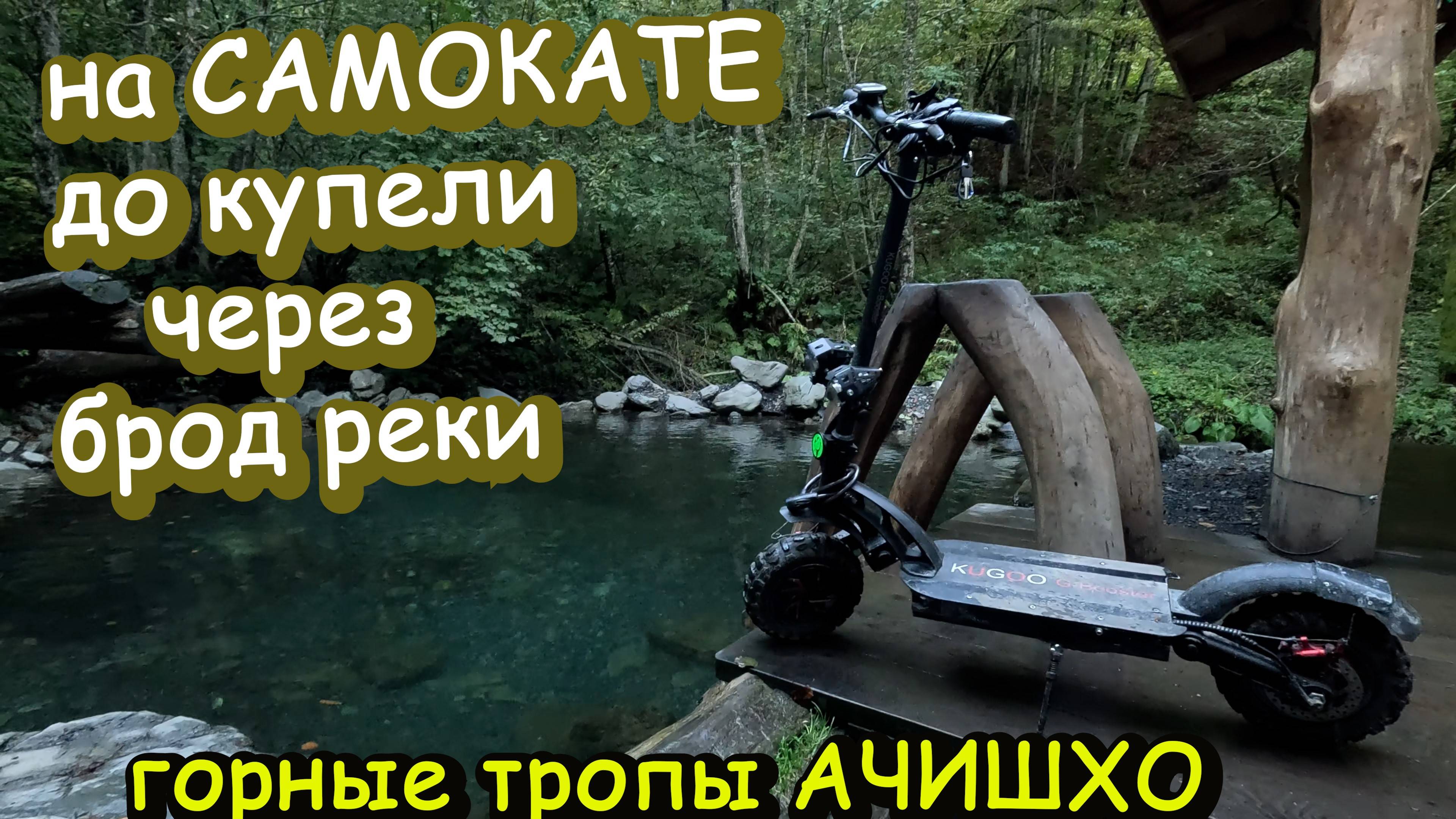 На самокате в брод реки, до купели в сторону Ачишхо. kugoo G-Booster