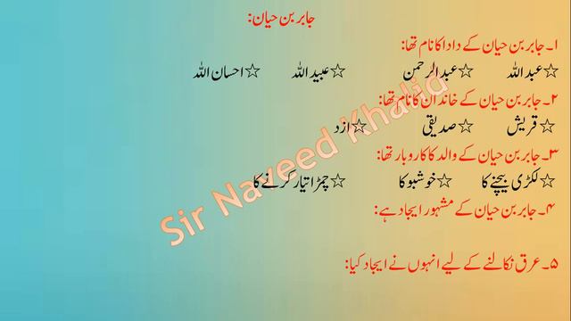 Jabir bin Hayan || 9th Islamiat || مکمل مشقی سوالات || جابر بن حیان