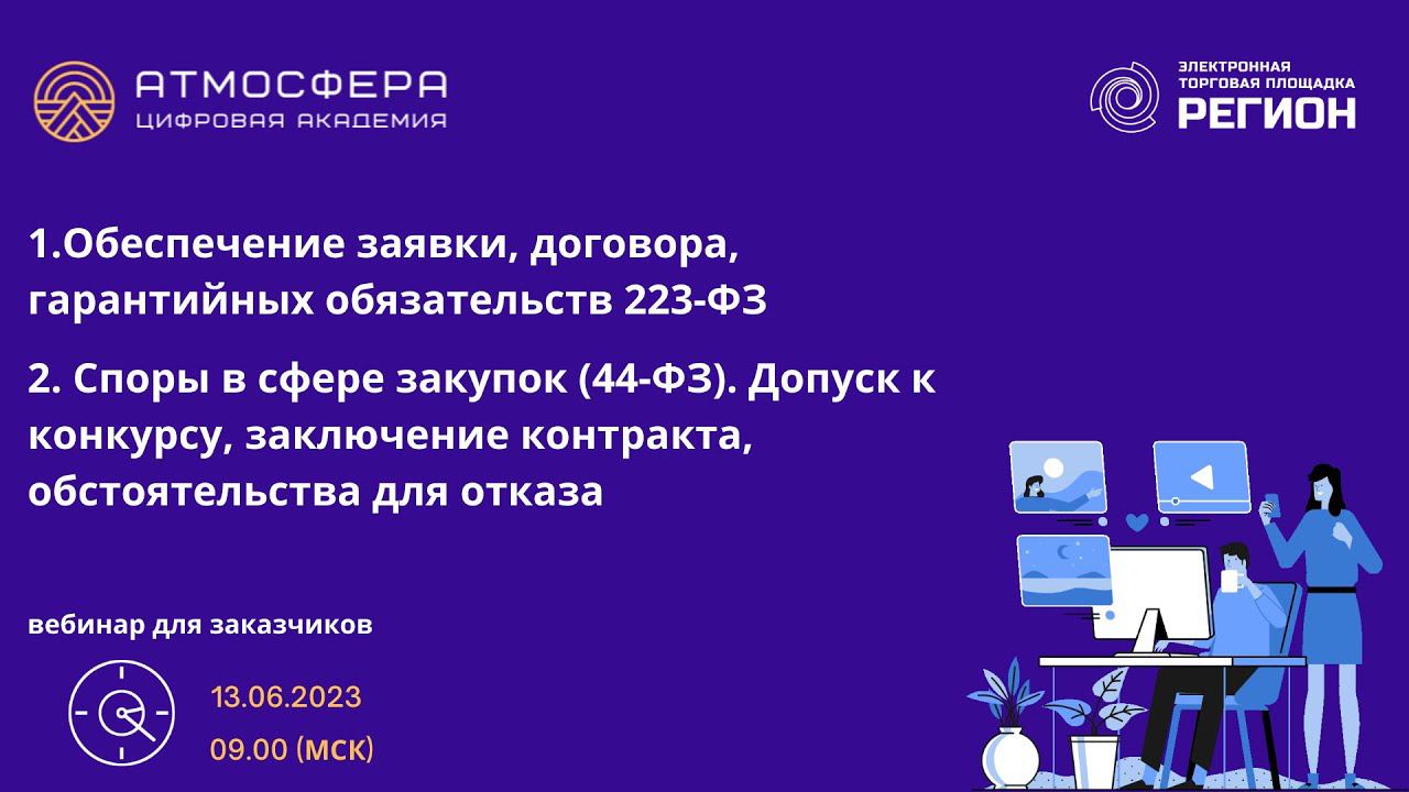 1. Обеспечение заявки договора гарантийных обязательств 223-ФЗ 2. Споры в сфере закупок 44-ФЗ.