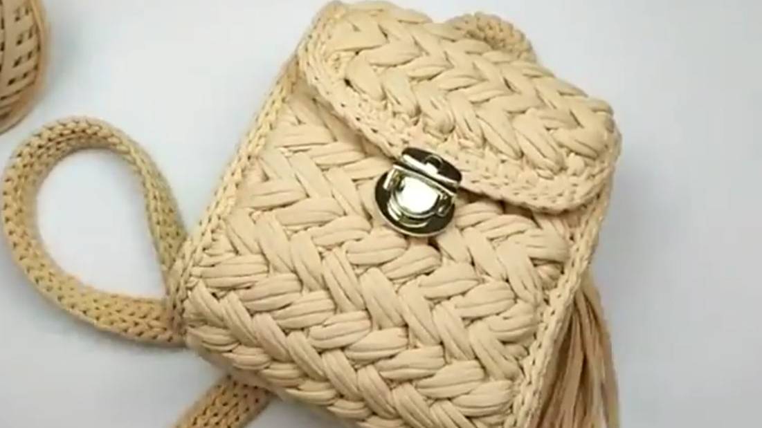 Размер рюкзака высота 26 см, ширина 21 см, глубина 13 см. Материалы для рюкзака: 1. Трикотажная пряжа ALTYN (100м/330гр, толщина нити 7 мм) 3 мотка, или другая пряжа, подходящая по толщине; 2. Крючок номер 6, и крючок номер 4 для вспомогательной работы; 3. Портфельный замок 1 шт; 4. Полукольца (внутри 20 мм) 4 шт; 5. Карабины для ремешков 4 шт; 6. Карабин для кисточки 1 шт;