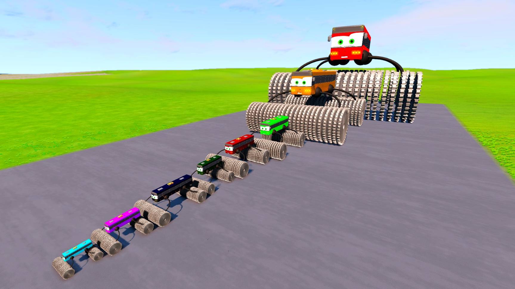Большой и маленький автобус Молния Маккуин против поездов | BeamNG.drive