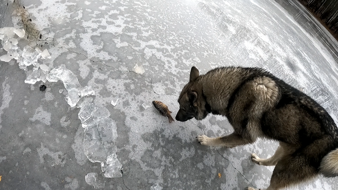 РЫБАЛКА СЕТЯМИ ПО ПЕРВОМУ ЛЬДУ. Лёд сломался - рыбак провалился.