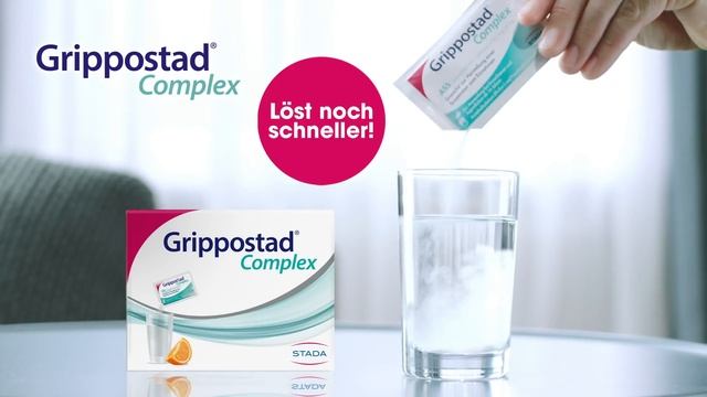 www.grippostad.de Grippostad® Complex ASS/Pseudoephedrinhydrochlorid mit Orangenaroma 500 mg/30 mg Granulat zur Herstellung einer Suspension zum Einnehmen Zur Anwendung bei Erwachsenen und Jugendlichen ab 16 Jahren. Wirkstoffe: Acetylsalicylsäure / Pseudoephedrinhydrochlorid. Zur Behandlung von Symptomen der Nasen-/Nasennebenhöhlenverstopfung (Rhinosinusitis), Schmerzen und Fieber im Zusammenhang mit Erkältung und/oder grippeähnlichen Symptomen. Wenn Sie nur eine der oben genannten Beschwerden haben, kann es effektiver sein, ein Arzneimittel einzunehmen, das nur einen der Wirkstoffe enthält. Hinweis: Nehmen Sie dieses Arzneimittel nicht länger als 3 Tage ein. Wenn Sie sich nach 3 Tagen nicht besser oder gar schlechter fühlen, wenden Sie sich an Ihren Arzt. Maximale Tagesdosis: bis zu 6 Beutel. Enthält Saccharose. Zu Risiken und Nebenwirkungen lesen Sie die Packungsbeilage und fragen Sie Ihren Arzt oder Apotheker. STADA Consumer Health Deutschland GmbH, Stadastraße 2–18, 61118 Bad Vilbel Stand: April 2021