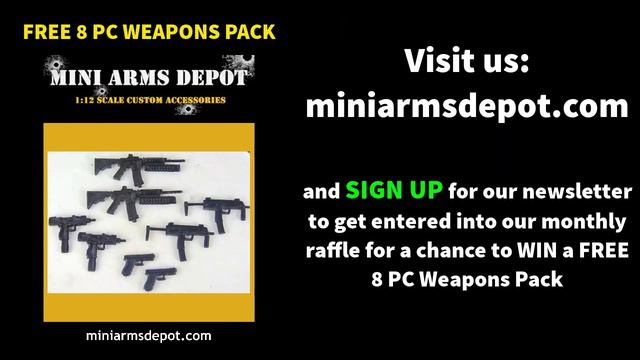 Custom 1:12 scale holsters and pistols set from MAD. The set comes in total of 7 pieces - 1 harness shoulder style holsters, 2 leg/thigh holsters and 3 modern style 9mm pistols. Works and scales well with most 6 inch action figures like GI JOE Classified, Marvel Legends, Mezco, and other figures from other brands similar in size. Come and visit us today on eBay, Etsy and Mercari. EBAY: https://www.ebay.com/str/miniarmsdepot ETSY: https://www.etsy.com/shop/MiniArmsDepot MERCARI: https://www.mercari.com/u/807329808/