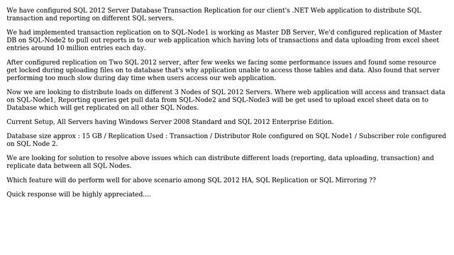 DevOps & SysAdmins: SQL 2012 Server Database Transaction Replication performance issue Helpful? Please support me on Patreon: https://www.patreon.com/roelvandepaar With thanks & praise to God, and with thanks to the many people who have made this project possible! | Content (except music & images) licensed under CC BY-SA https://meta.stackexchange.com/help/licensing | Music: https://www.bensound.com/licensing | Images: https://stocksnap.io/license & others | With thanks to user TomTom (serverfault.com/users/37059), user pauska (serverfault.com/users/9140), user Nirav Patel (serverfault.com/users/182371), and the Stack Exchange Network (serverfault.com/questions/524922). Trademarks are property of their respective owners. Disclaimer: All information is provided "AS IS" without warranty of any kind. You are responsible for your own actions. Please contact me if anything is amiss at Roel D.OT VandePaar A.T gmail.com
