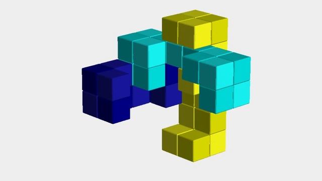 Авторская головоломка Андрея Устюжанина "Узел 8". Из шести брусков 6х2х2 необходимо собрать пространственный узел 6х6х6 (т.н. классический узел из шести брусков). Внутри узла имеются пустоты, за счет которых головоломка становится многоходовой. У головоломки единственный вариант решения. Сложность: 13 (8.1.1.2) - то есть, чтобы из собранного состояния освободить первую деталь, необходимо сделать восемь ходов.