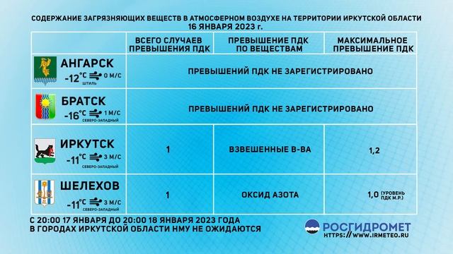 [17.01.2023] Мониторинг состояния атмосферного воздуха 16.01.2023