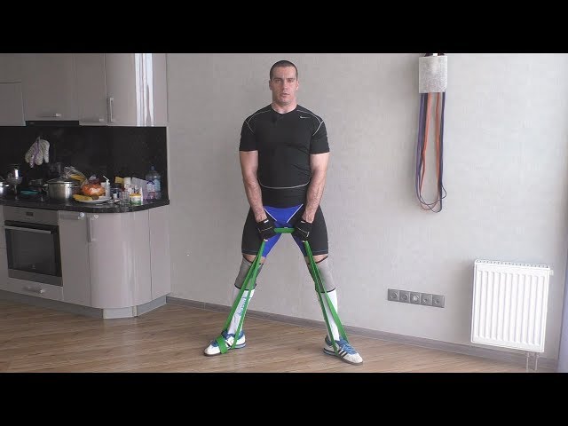 Купить такие же резинки можно здесь: https://fitfil.ru По промокоду trener скидка 10% на все товары. Скачать весь видео курс упражнений с резиной можно здесь: https://tvoytrener.com/rezina.php Описание упражнения Чем сильнее развернёте носки и колени, тем больше нагрузка ляжет на внутреннюю поверхность бедра. Спину сильно не наклонять. В основном должны работать ноги. Для более гибких и продвинутых ноги можно поставить на подставки. Это позволит опуститься ещё ниже. Основные фишки 1. Чтобы увеличить силу натяжения резины, можно её обернуть дополнительный раз вокруг ступни, или перекрктить несколько раз между собой. В общем, даже в нижней точке резина должна быть натянута. 2. Старайтесь чтобы спины была ровная, а руки в локтях прымые. При этом руки должны быть максимально расслабленые. В верхней точке старайтесь плечи разворачивать назад, чтобы не горбиться, ведь резина будут утягивать вас не только вниз, но и плечи немного вперёд. 3. Можно так же ещё вешать на пояс другую резину и первую продевать через неё. При таком варианте спина не нагружается, и работают только ноги. Руки обычно покоятся на плечах. Этот вариант довольно редко используют, так как мало кому охота заморачиваться с ним. Но он незаменим, когда вы хотите тренировать только ноги или когда у вас проблемы со спиной. 4. Если внизу таз опускать ниже, то бёдра будут работать сильнее. Если, наоборот, поднимать выше, то больше будут работать мышцы разгибатели спины (поясница). 5. Ноги, как правило, ставятся чуть шире плеч и носки разворачиваются в сторону под углом 45 градусов. Это делается для того, чтобы вовлечь в работу внутреннюю поверхность бедра.