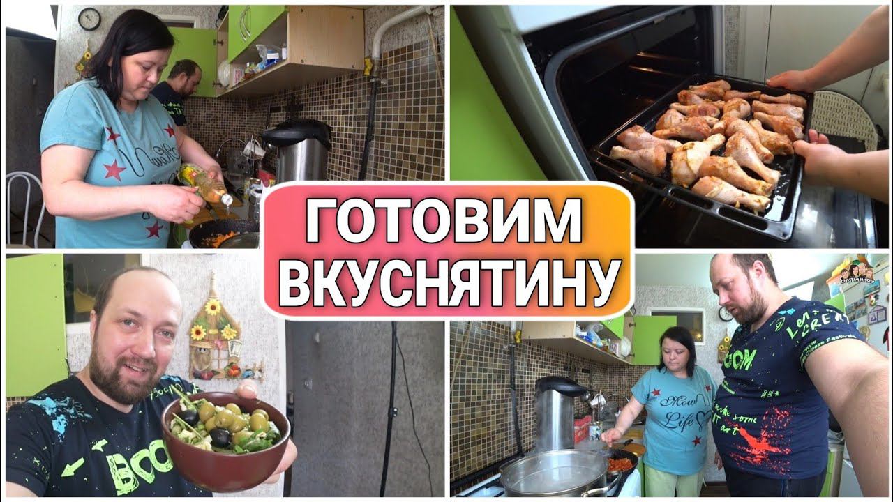 ВЛОГ! Готовим жареную курочку и салат из рукколы со свежим огурцом//Делаем заготовку для солянки