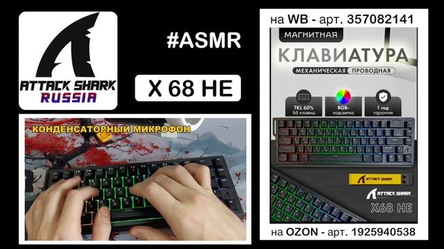 🎧 ATTACK SHARK X68HE ASMR Typing Sound | АСМР Тайпинг Набор Текста Звуковой Тест Погрузись в звук будущего. ATTACK SHARK X68HE — магнитная клавиатура с Rapid Trigger и точностью до 0.01 мм. Здесь ты услышишь не просто клики, а реакцию каждой клавиши на миллиметры движения. Никаких слов — только чистый, упругий, магнетический звук. 🔹 Магнитные переключатели с настраиваемой активацией 🔹 Gasket Mount для мягкой амортизации 🔹 Компактный 65% форм-фактор 🔹 Прозрачные PBT-кейкапы с гравировкой 🔹 Частота опроса до 8000 Гц 🎥 Обзор этой модели уже на канале — не пропусти: https://rutube.ru/video/9075b38b41e0d9f0193ab366d42a4e63/ Готов услышать это вживую?! 🛒 ГДЕ КУПИТЬ ATTACK SHARK X68HE? МЫ — ОФИЦИАЛЬНЫЕ ДИЛЕРЫ ATTACK SHARK В РОССИИ! 🦈 Покупайте в наших магазинах Attack Shark RUSSIA на маркетплейсах: 🔵 Купить X68HE на OZON 👉 https://ozon.onelink.me/SNMZ/qbbayzeb 🟣 Купить X68HE на Wildberries 👉 https://www.wildberries.ru/catalog/357082141/detail.aspx?utm_source=blog&utm_medium=blog&utm_campaign=329855-id-anna&utm_term=X68HE-Black 🟠 Купить X68HE на DNS 👉 https://www.dns-shop.ru/product/a29a74867f8d50e8/klaviatura-provodnaa-attack-shark-x68he/ 🔗 Скачать СОФТ для X68HE 👉 https://support.attackshark.com/ATTACKSHARK/X68HE/X68HEDriver.exe 🌍 Открыть ВЕБ-ДРАЙВЕР для X68HE 👉 https://qmk.top/ 💬 Задать вопрос/Предложка 👉 https://taplink.cc/attackshark_russia #ATTACKSHARK #ASMR #Typing #АСМР @AttackShark_RUSSIA ПОДПИСЫВАЙСЯ ✅ _____ Спасибо, что смотрели нас на RuTube! Играй на полную мощь — мы идём только вперёд! Подписывайся и стань настоящим хищником вместе с #AttackSharkRUSSIA 🦈