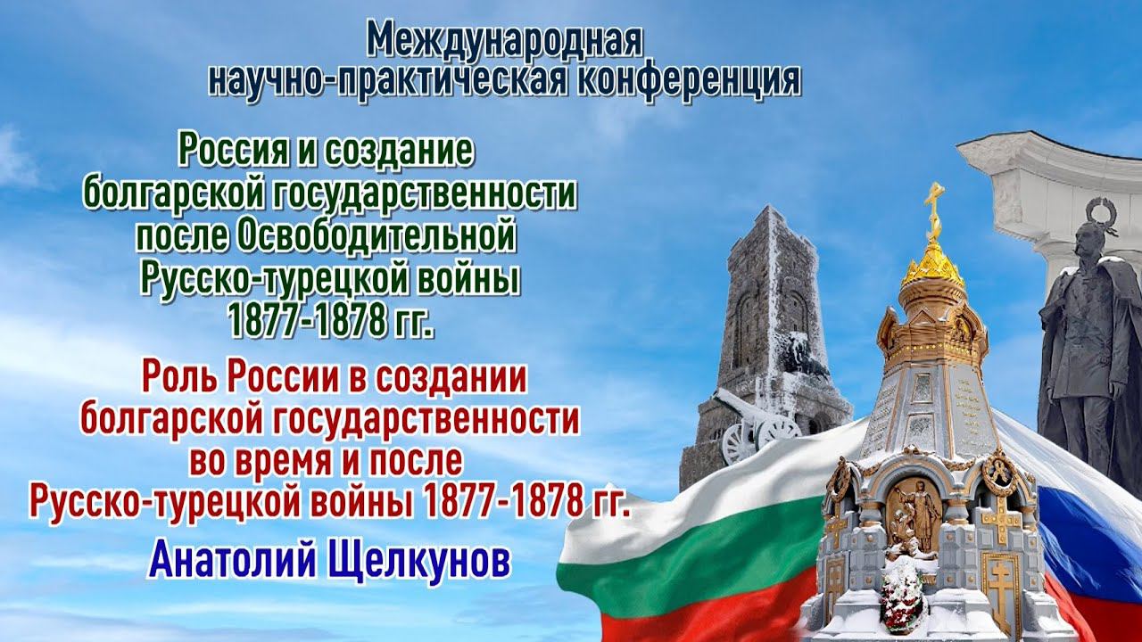 7–го марта в Москве, в Доме Союза писателей России, состоялась международная научно-практическая конференция на тему «Россия и создание болгарской государственности после Освободительной русско-турецкой войны 1877-1878 г». Конференция была организована Союзом писателей России, Общественной организацией «Ассоциация и развитие болгарской культуры», Фондом “Устойчивого развития Болгарии», Национальным движением Русофилы (Болгария). В данном видео Анатолий Щелкунов – кандидат философских наук, член Союза писателей России, почётный гражданин города Варна читает доклад "Роль России в создании болгарской государственности во время и после русско-турецкой войны 1877-1878 гг."