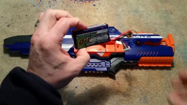 Closer look at how the Stryfe battery tray integrates into the Hailstorm Mk.5 to support a 4S Lipo.