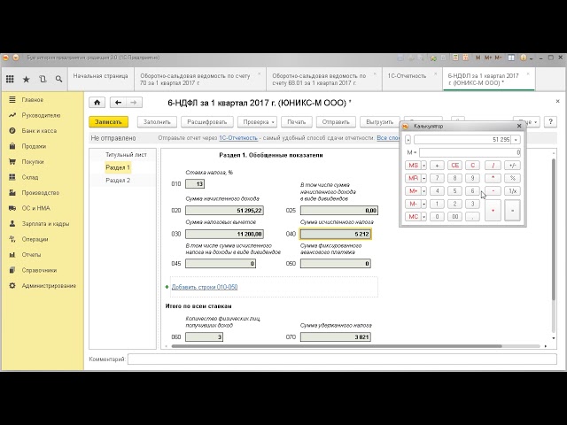 Фрагмент урока 'Расчет 6-НДФЛ в 1С: Бухгалтерия 8.3'