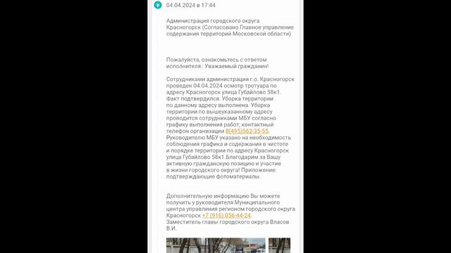 Ответ с сайта Добродел. На сегодняшний день лично не могу проверить данную информацию, но поверю, что после личного приема у главы города Красногорска и отправки его подчинённым вчера вечером на рабочий номер эту же информацию - результаты. Всем чистого и безопасного города. #2024 #россия #красногорск #город #дом #ответ #отчет