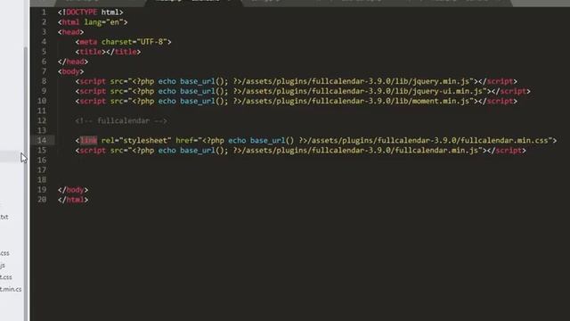Código fuente: https://www.dropbox.com/s/d9sdxqa0u9o6q9e/calendario.zip?dl=0 Esta primera parte se muestra como instalar y hacer las llamadas de los librerias y dependencias para implementar el plugin fullcalendar
