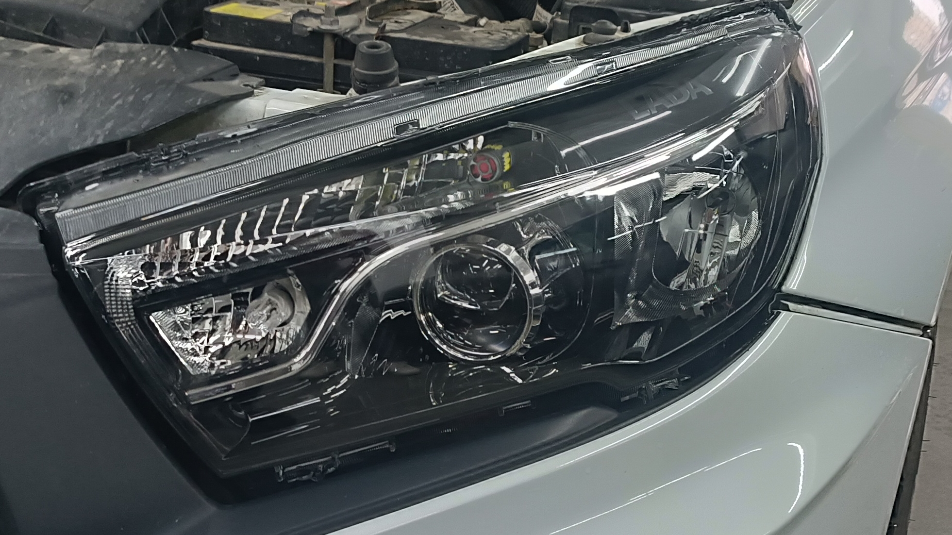 Lada Vesta установка светодиодных линз Viper Z 22 3” 5500K Хром на Хроме