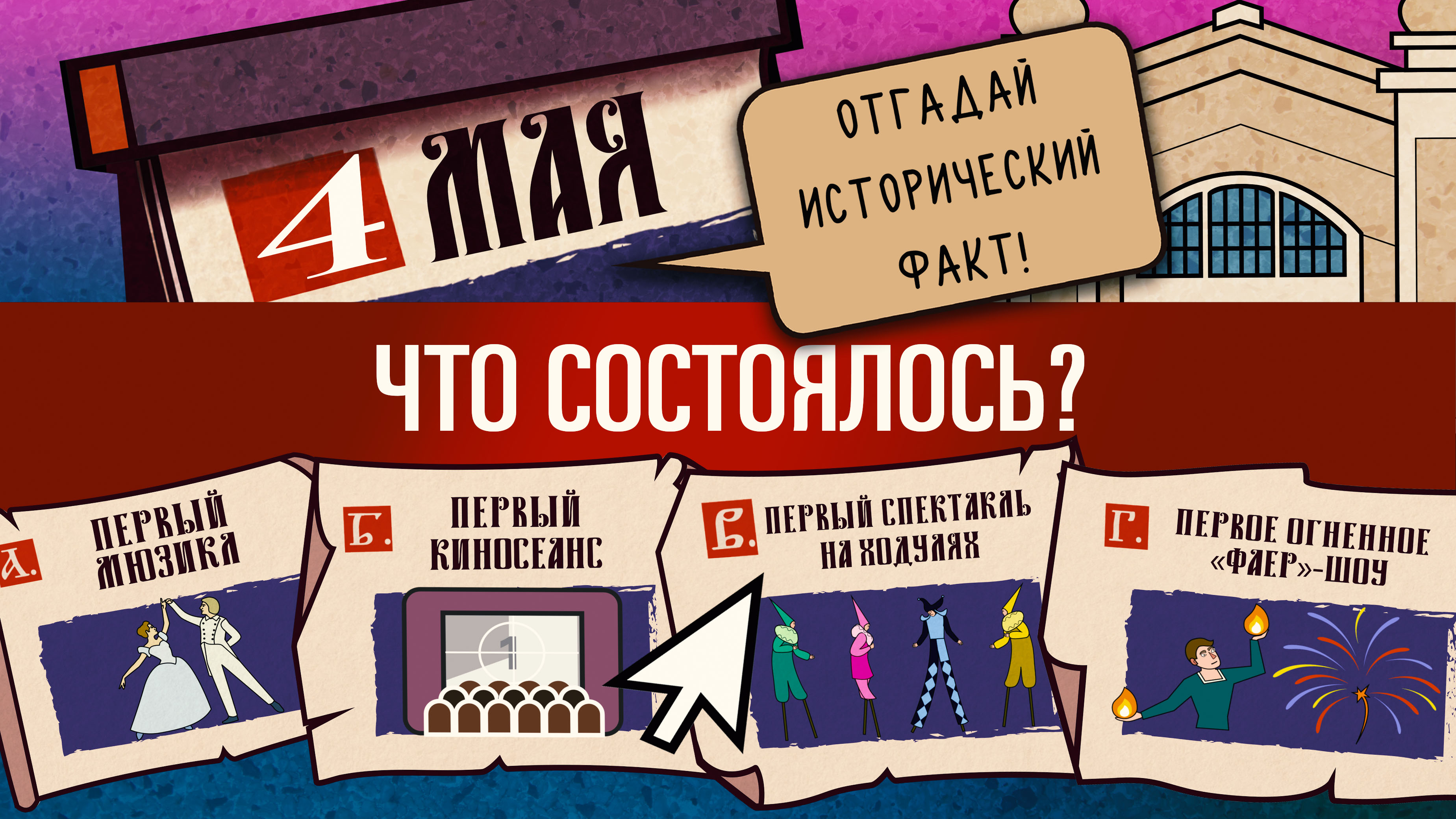 Любите ли вы балет? Если да, то скорее смотрите сегодняшний выпуск, и тогда вы узнаете об основании одной очень важной академии! Отгадай, что случилось «Сего дня»!