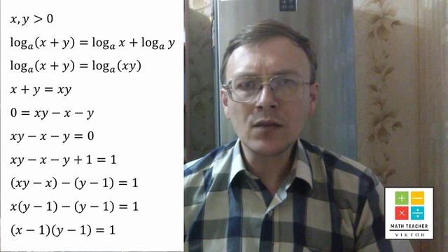 Видеоролик-задача 41 - Логарифм суммы равен сумме логарифмов
