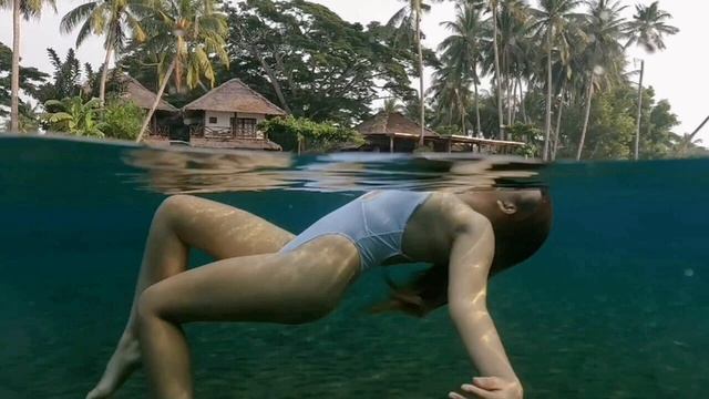 Девушка-купальщица в природной воде.