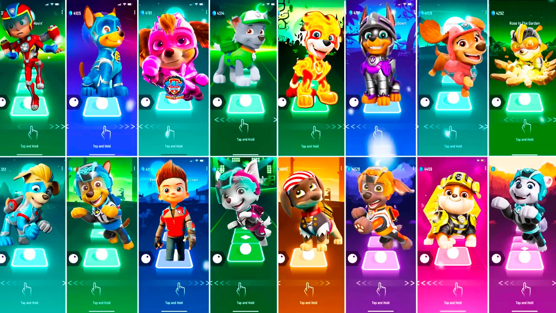 Мультики для Детей Щенячий Патруль Tiles Hop - РАЙДЕР, ГОНЩИК, СКАЙ, РОККИ, МАРШЕЛЛ, КРЕПЫШ
