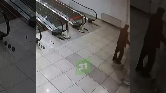 Охранник супермаркета в Челябинске решил спустить по эскалатору целый ряд тележек