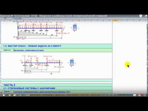 Приглашаем в наш онлайн университет "Расчеты конструкций на прочность и жесткость" на ускоренные летние курсы http://shop.sopromex.ru/uskor2018 Подписка на все бесплатные видео тренинги http://m1.sopromex.ru/ Представлен обзор занятия № 18 "Ехcel-шаблон Поперечный изгиб стержней. Введение. Техника решения любых стержней." первого семестра "Основы расчетов конструкций на прочность и жесткость". Продолжительность каждого занятия 2х45 минут, 5 минут перерыв. Поступить в университет можно в любое время, так как все проведенные занятия автоматически записываются и доступны слушателям для просмотра или скачивания.