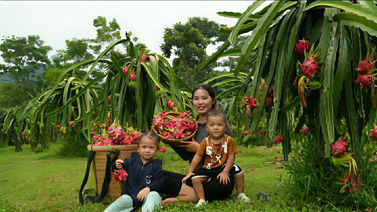 Здесь есть все Harvesting giant dragon fruit garden to sell at market - cooking fish for little daughter to eat