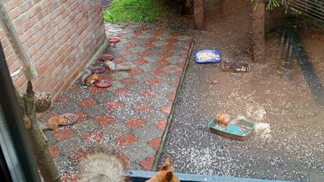 белки делят кормушки.