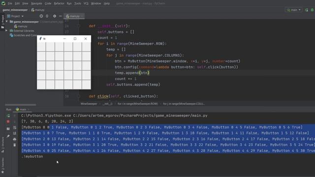 Игра "Сапер" на Python, обработка нажатия кнопок. Minesweeper in Python Tkinter
