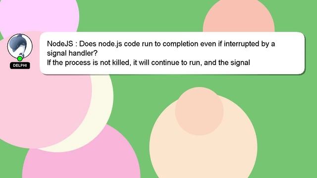 NodeJS : Does node.js code run to completion even if interrupted by a signal handler? To Access My Live Chat Page, On Google, Search for "hows tech developer connect" I promised to share a hidden feature with you, and here it is. This is a YouTube's feature which works on Desktop. First, Make sure this video is playing. Then, type the letters 'awesome' on the keyboard. Your YouTube progress bar will transform into a flashing rainbow. Let me give you a brief introduction of who I am, Hey, I'm known as Delphi. I can help you find the answers you are looking for. NodeJS : Does node.js code run to completion even if interrupted by a signal handler? If you have more specific queries, please feel free to reach out through comments or chat. If you have an answer, or any insights to the answer, please comment below. Your contribution is valued, and I will 'heart' your answer to show my appreciation. NodeJS node.js Does completion even a run by : handler? interrupted signal code if to