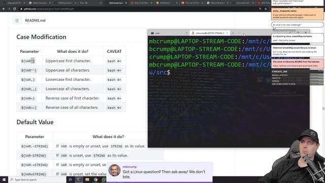 00:00 https://github.com/tallguyjenks/BusinessCard 03:41 https://twitchchat.blob.core.windows.net/streamlinks/latest.html 03:57 http://dotshare.it 06:34 https://github.com/mbcrump/mbcrump-twitch/blob/main/src/zsh-config/mbcrump.zshrc 07:18 https://www.youtube.com/watch?v=JT6QXppPRVc 07:37 https://kali.training/downloads/Kali-Linux-Revealed-2021-edition.pdf 08:28 https://github.com/dylanaraps/pure-bash-bible 09:40 https://securitytxt.org/ 10:54 http://permission.site 11:45 https://infosecstreams.github.io 12:28 https://www.hacksplaining.com/lessons 12:56 https://kmdr.sh/ 15:06 https://explainshell.com 15:21 https://linuxcommandlibrary.com/basic/oneliners.html Do you have questions? Then reach out on social or join our Twitch stream and discord community. ✭ TWITCH: http://twitch.tv/mbcrump ✭ DISCORD:https://discord.gg/qrGrx8m ✭ TWITTER: http://twitter.com/mbcrump ✭ GITHUB: http://github.com/mbcrump ✭ INSTAGRAM: https://instagram.com/mbcrump ✭ DEV.TO: https://dev.to/mbcrump ✭ YOUTUBE: https://youtube.com/mbcrump Wanna know when I'll be live on Twitch next? https://www.twitch.tv/mbcrump/schedule If you want to work with us (via sponsorship/partner) then contact mbcrump29@gmail.com.