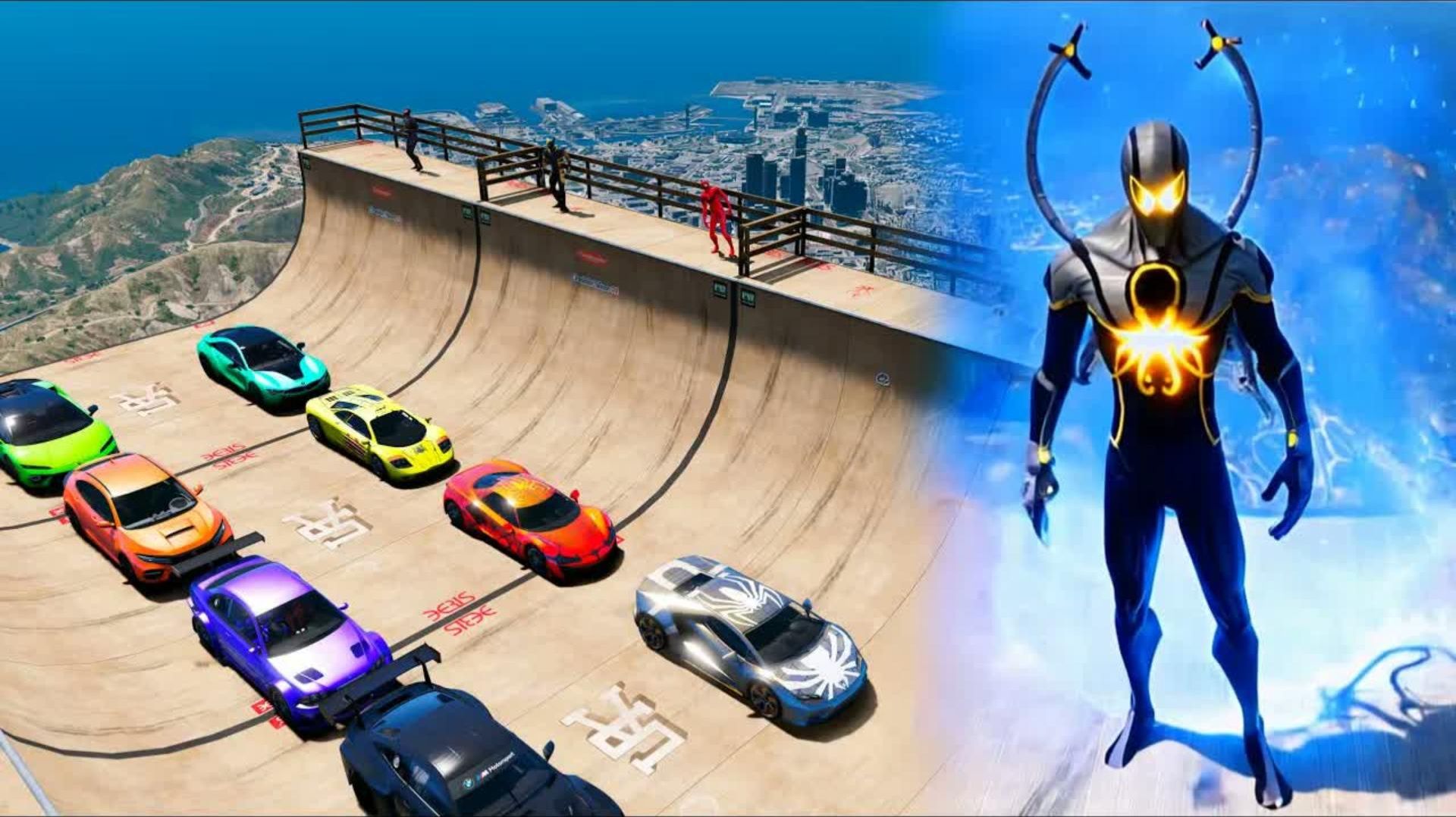 Гонки Машинок в ГТА|СУПЕРГЕРОИ КАТАЮТСЯ НА ТАЧКАХ|МОНСТЫ ПРОТИВ ЧЕЛОВЕКА ПАУКА | КРУТОЙ ТРАМПЛИН 7