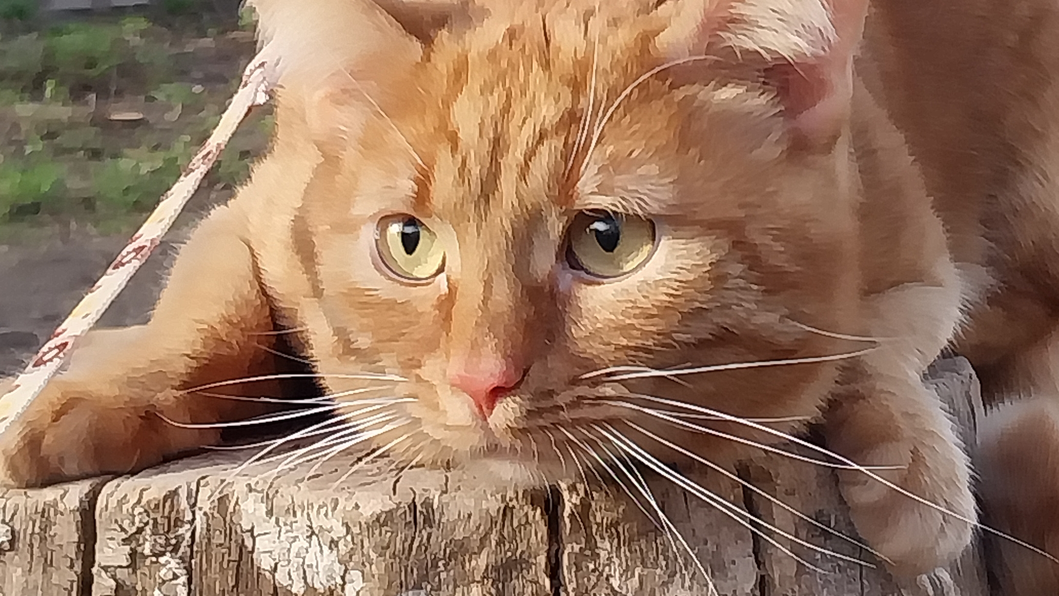 Реакция рыжего кота на запахи во время прогулки.