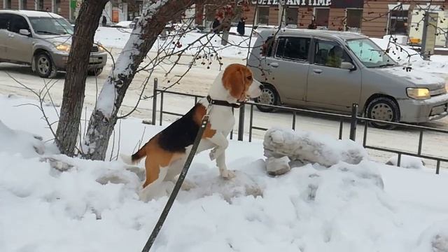 Наша собака очень любит ранетки! Зимой не может пройти мимо кустиков с этими яблочками!
