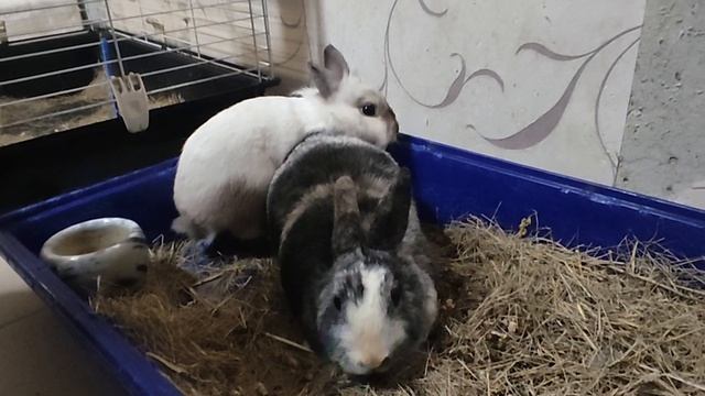 Жена кормит кроликов лакомством