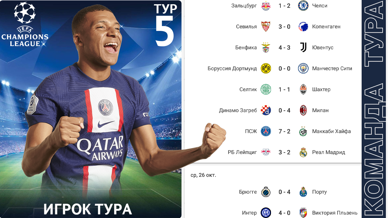 Лучшие Игроки Лига Чемпионов 5 тур Team 5 round Champions League