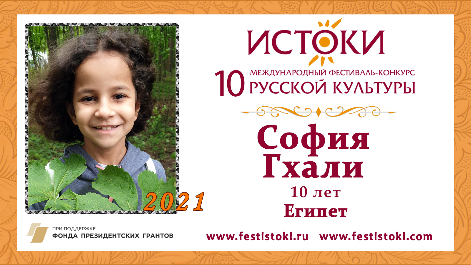 Участница Юбилейного X Международного фестиваля-конкурса русской культуры "Истоки". Сайт: www.festistoki.ru / www.festistoki.com E-mail: festistoki@mail.ru