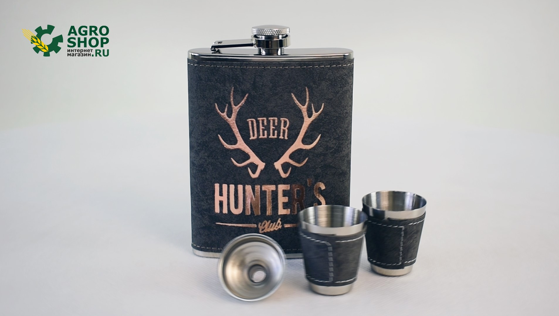 Подарочный набор Клуб Охотников - фляжка 240 мл и 2 стопки, декорированные антискользящим покрытием из кожзама с тисненым рисунком в виде рогов оленя и надписью Deer Hunter`s, и воронка. Все предметы изготовлены из нержавеющей стали, подарочная коробка декорирована серебристым дизайнерским картоном со структурой ткани. Отличный подарок друзьям и близким на любой праздник! Заказать товары для туризма, активного отдыха, рыбалки, охоты, дома, дачи, инструменты, автоаксессуары, одежду, обувь и другое: https://Agro-Shop.ru! Заходите к нам в TELEGRAM: https://t.me/agroshopruss #подарочныйнабор #клубохотников #охотничья #фляжка #стопки #тиснение #рогаоленя #DeerHunters #нержавеющаясталь #стильныйподарок #agroshop #агрошоп #доставка #бесплатная #россия