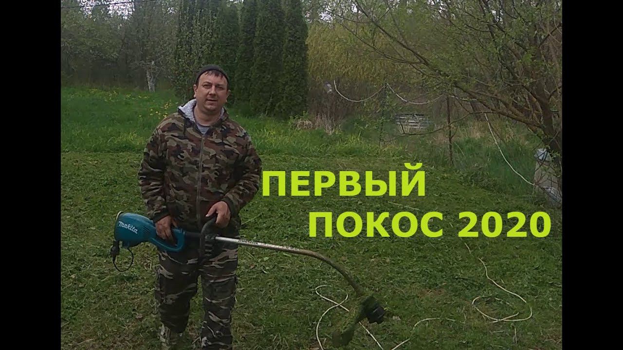 Первый покос травы в этом году. ПЕРВЫЙ ПОКОС 2020 электро тримером.