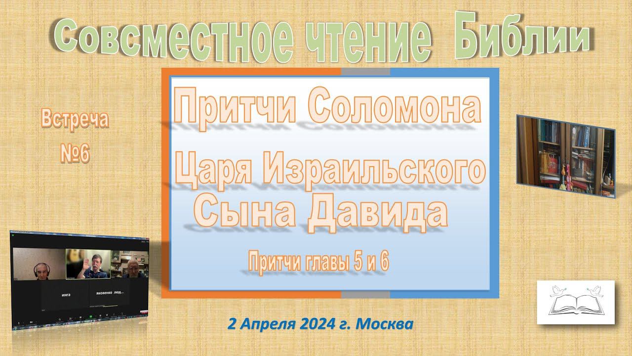 Совместное Чтение Библии. №5 Притчи главы 5-6. Встреча 2 Апреля 2024 г.