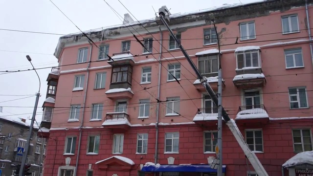 Как убирают сосульки с крыш в Новосибирске (HD)