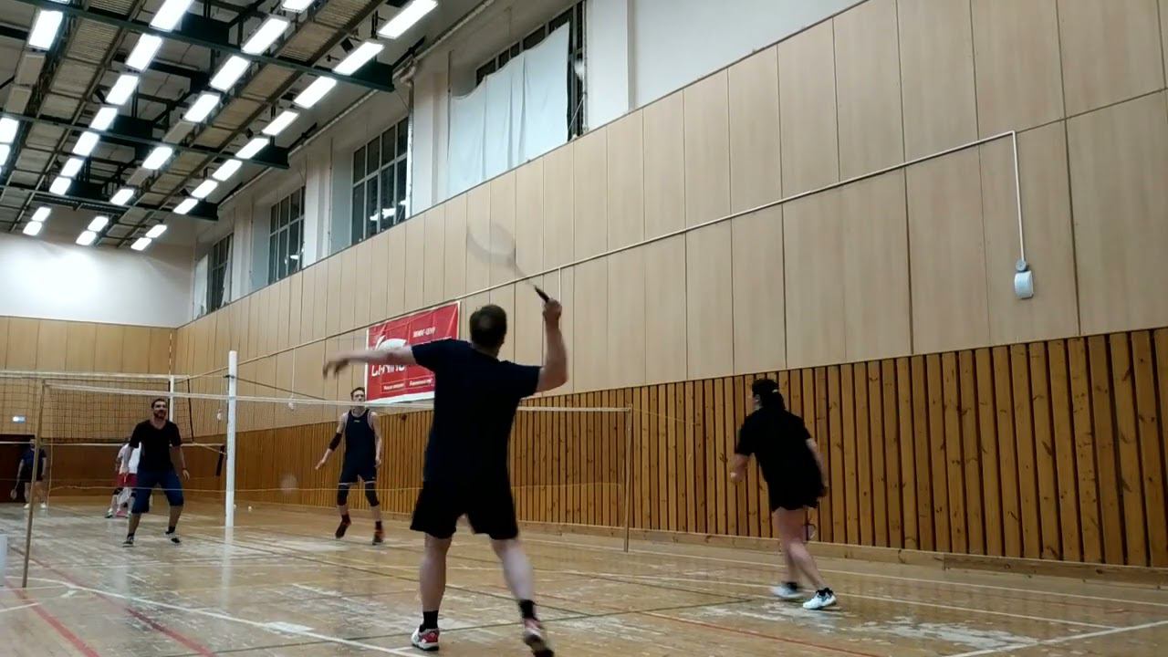 Тренировочная игра в бадминтон через сетку. Играют любители, новички и опытные бадминтонисты. Игра в Лестехе (МГУЛ ранее, сейчас называется филиалом Бауманки). Хочешь тоже играть? Приходи - https://badminton77.ru/map/4/ #badminton #badmintonlovers #badmintonrussia #lesteh #ЛесТех #бадминтон