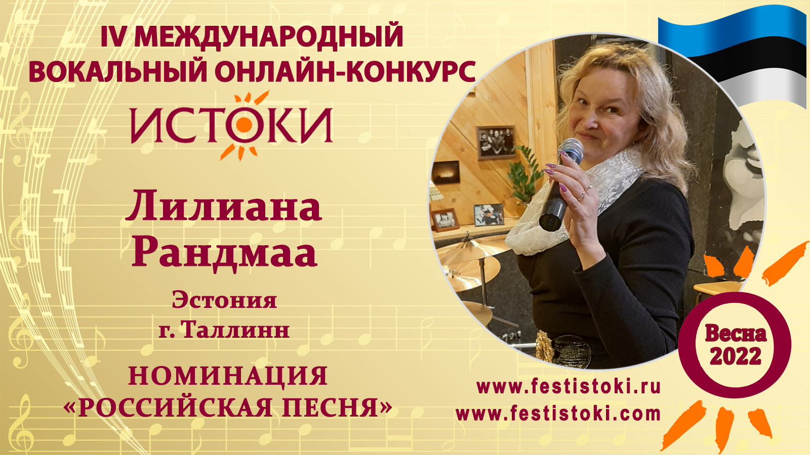 Дипломант IV Международного вокального онлайн-конкурса «Истоки».Весна-2022. Номинация "Российская песня". Песня "А я люблю военных" Слова Е.Грабовская, музыка И.Саруханов. Сайт: www.festistoki.ru / www.festistoki.com E-mail: festistoki@mail.ru
