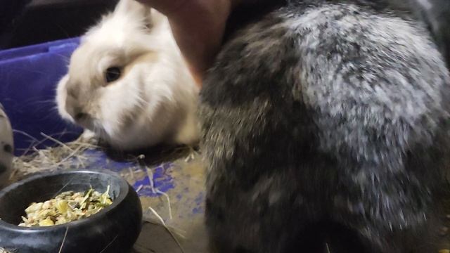 Кролики на весах, выполняют команды