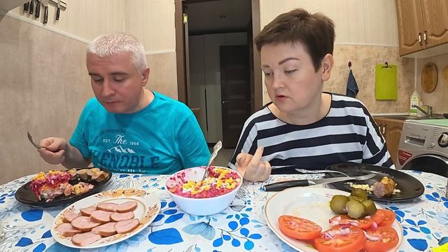 Мукбанг ПРИМИРИТЕЛЬНЫЙ ужин. ИЗВИНИЛАСЬ перед мужем его любимой СЕЛЁДКОЙ под шубой) Семейный ужин