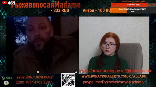 Стримы проводим на новом канале по ссылке https://www.youtube.com/channel/UCpd7cP8a8TbXkhRfZB9-V1g также стримы можно смотреть на следующих платформах https://vkplay.live/rmadame https://vk.com/video/ @RMadame https://boosty.to/ryzhevolosaya-madame Свежие нарезки можно смотреть https://dzen.ru/redheadmadamchat?share_to=link https://www.youtube.com/@RMadam1 https://www.youtube.com/@RMadame Пообщаться в голосовом чате, обсудить новости и узнать первым о предстоящем стриме можно подписавшись на телеграмм канал https://t.me/redheadMadamchat Все беседы ведутся с развлекательной целью и не направлены на разжигание какой либо вражды. Поддержать меня карта Сбер 2202 2067 3874 8602, Тинькофф 2200 7009 0724 4924 или голосовым донатом по ссылке https://www.donationalerts.com/r/alladm Для вопросов и предложений @RedHeadMadamBot