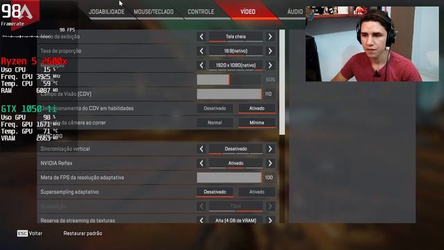 Teste da GTX 1050 ti no Apex Legends