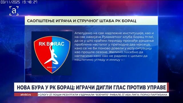 Нова бура у РК Борац: Играчи дигли глас против управе