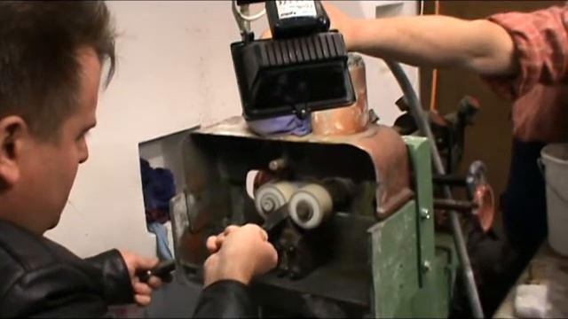 Не особо сложная операция - шлифовка вогнутости. Думаю - день, два и можно работать качественно. Действие происходит в городе Золинген (Solingen) - я шлифую заготовку опасной бритвы.