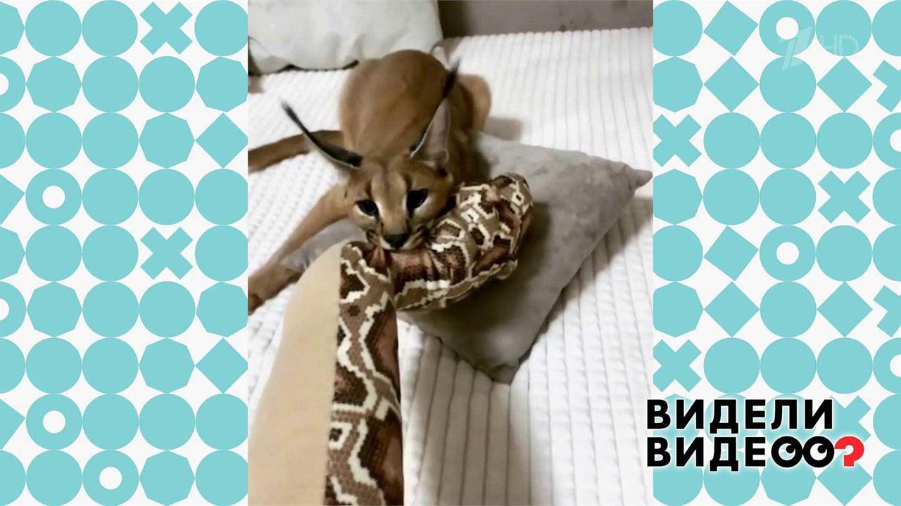 Кошка - чемпионка по перетягиванию удава. Видели видео? Фрагмент выпуска от 12.01.2020